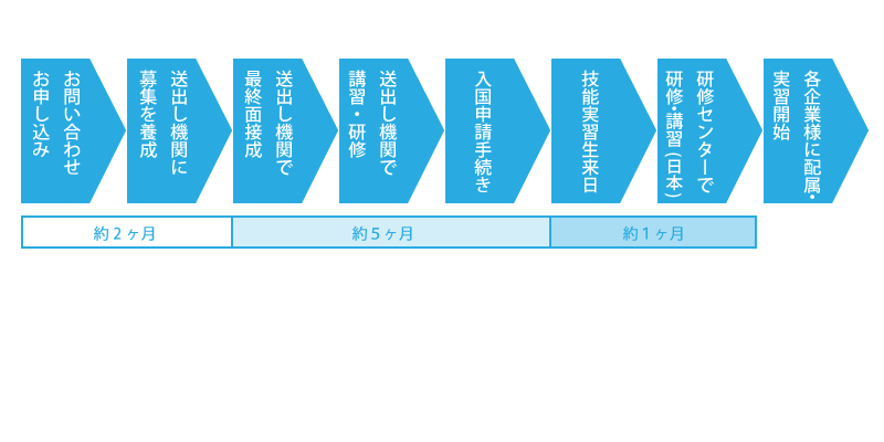 申請から技能実習生の帰国まで徹底サポートいたします。